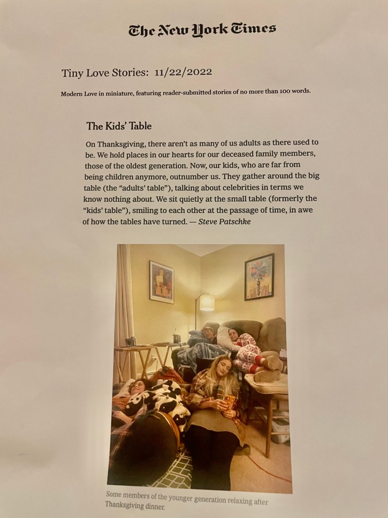 THE NEW YORK TIMES! Read this great article I published n the New York Times about love and family at Thanksgiving!